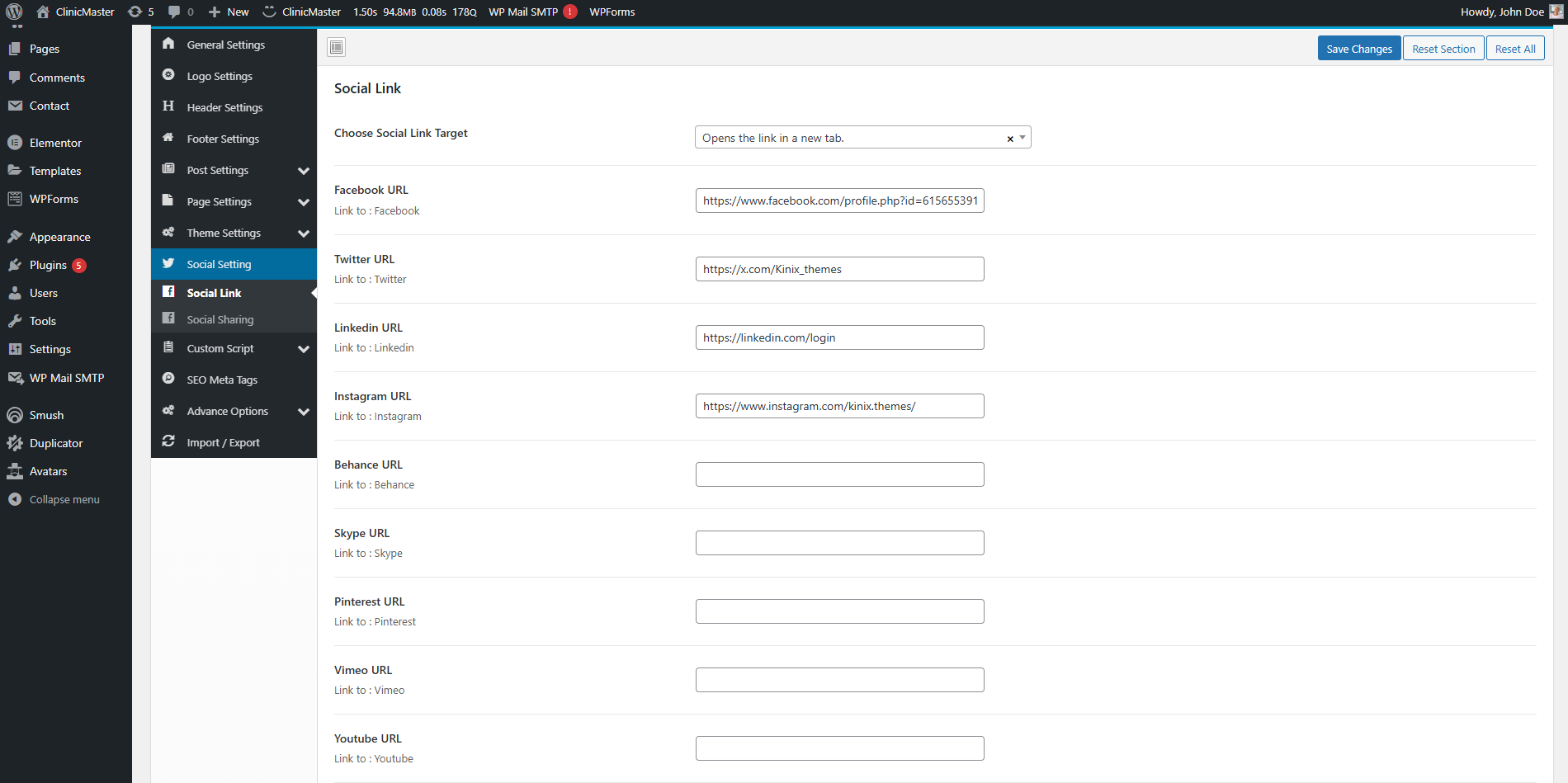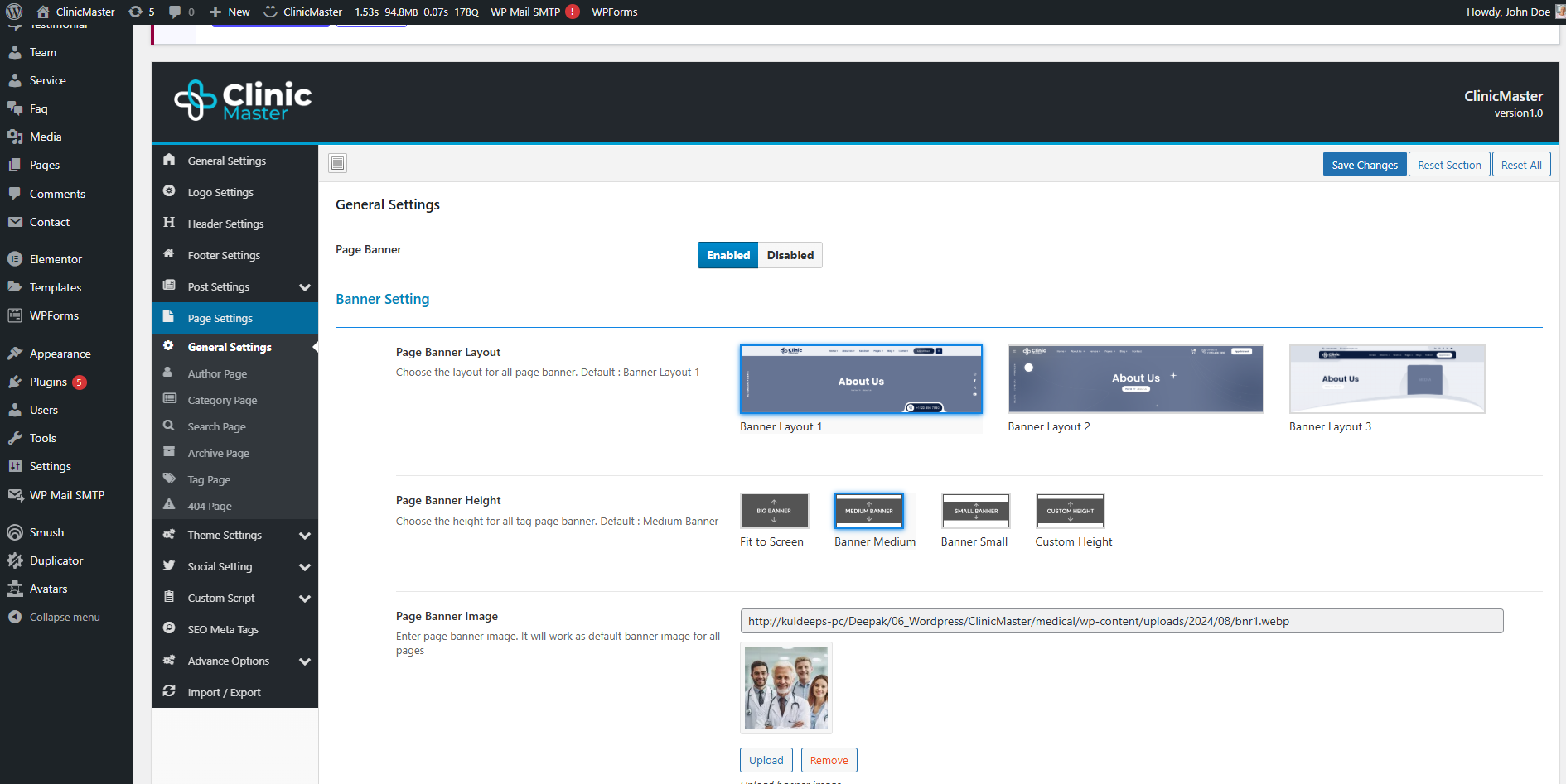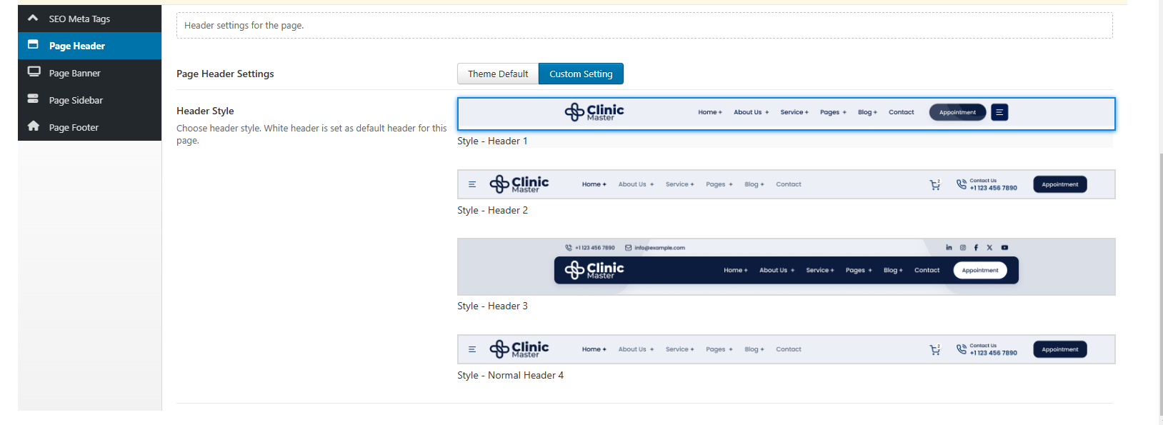 There are many other settings that are related to ClinicMaster theme, go to Theme Options, where you will find lots of theme related settings .
