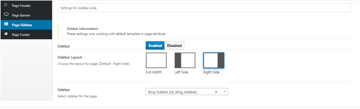 The page related setting will be set here, go to wp-admin > Pages > Add New/ edit page.