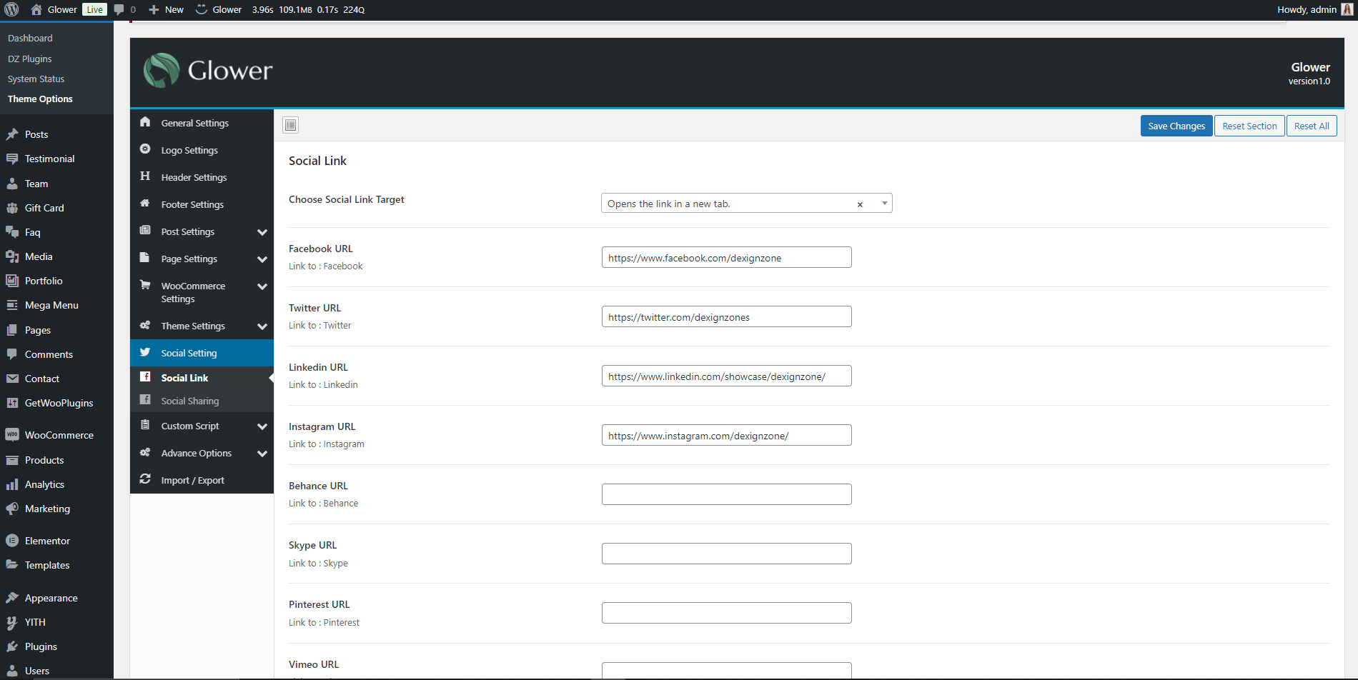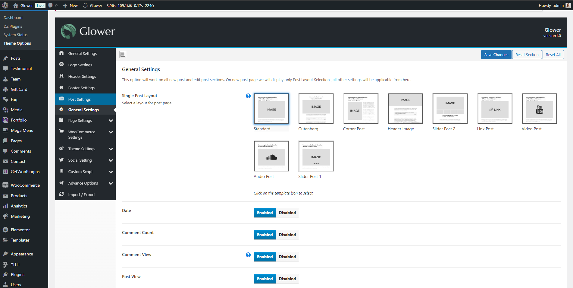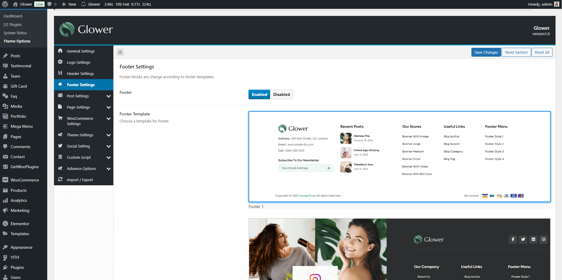 There are many other settings that are related to Glower theme, go to Theme Options, where you will find lots of theme related settings .