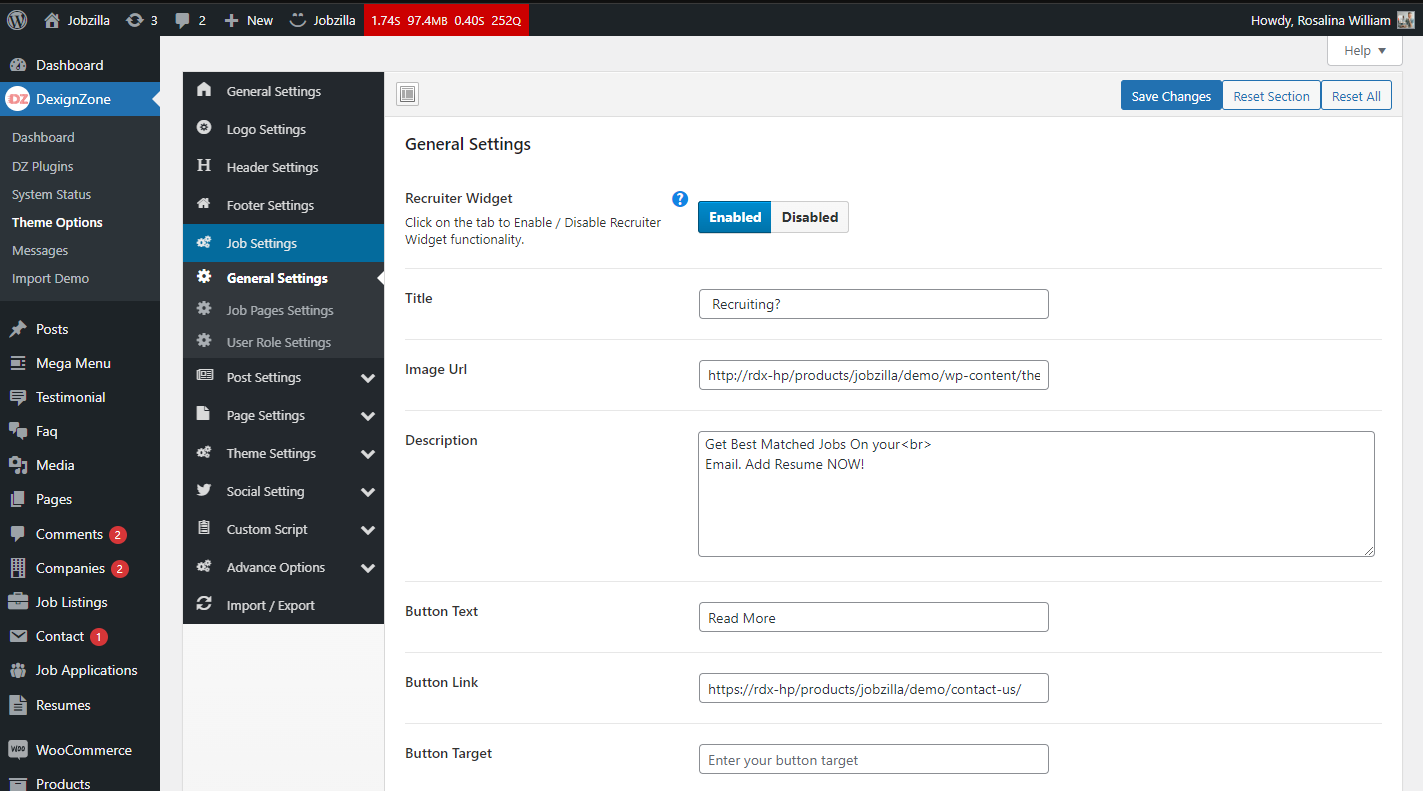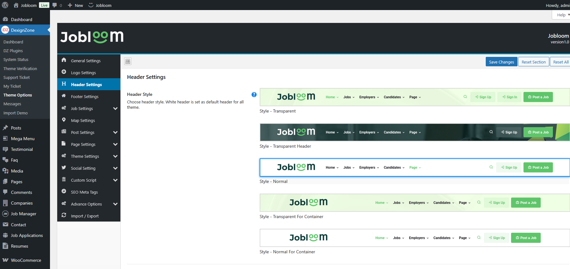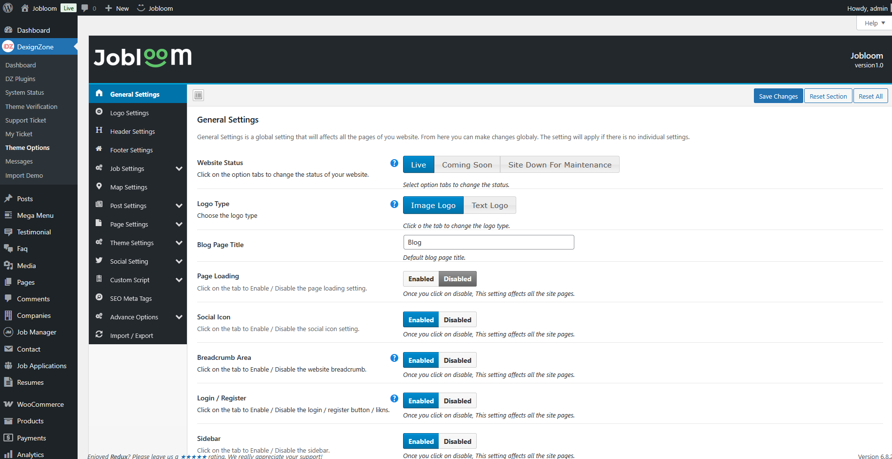 There are many other settings that are related to Jobloom theme, go to Theme Options, where you will find lots of theme related settings .