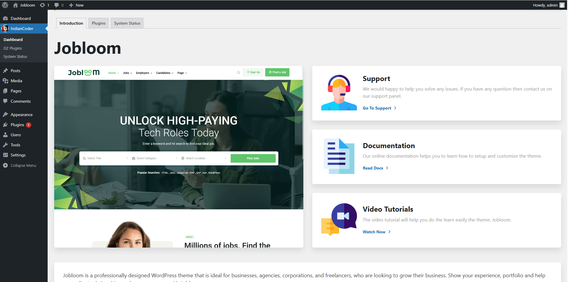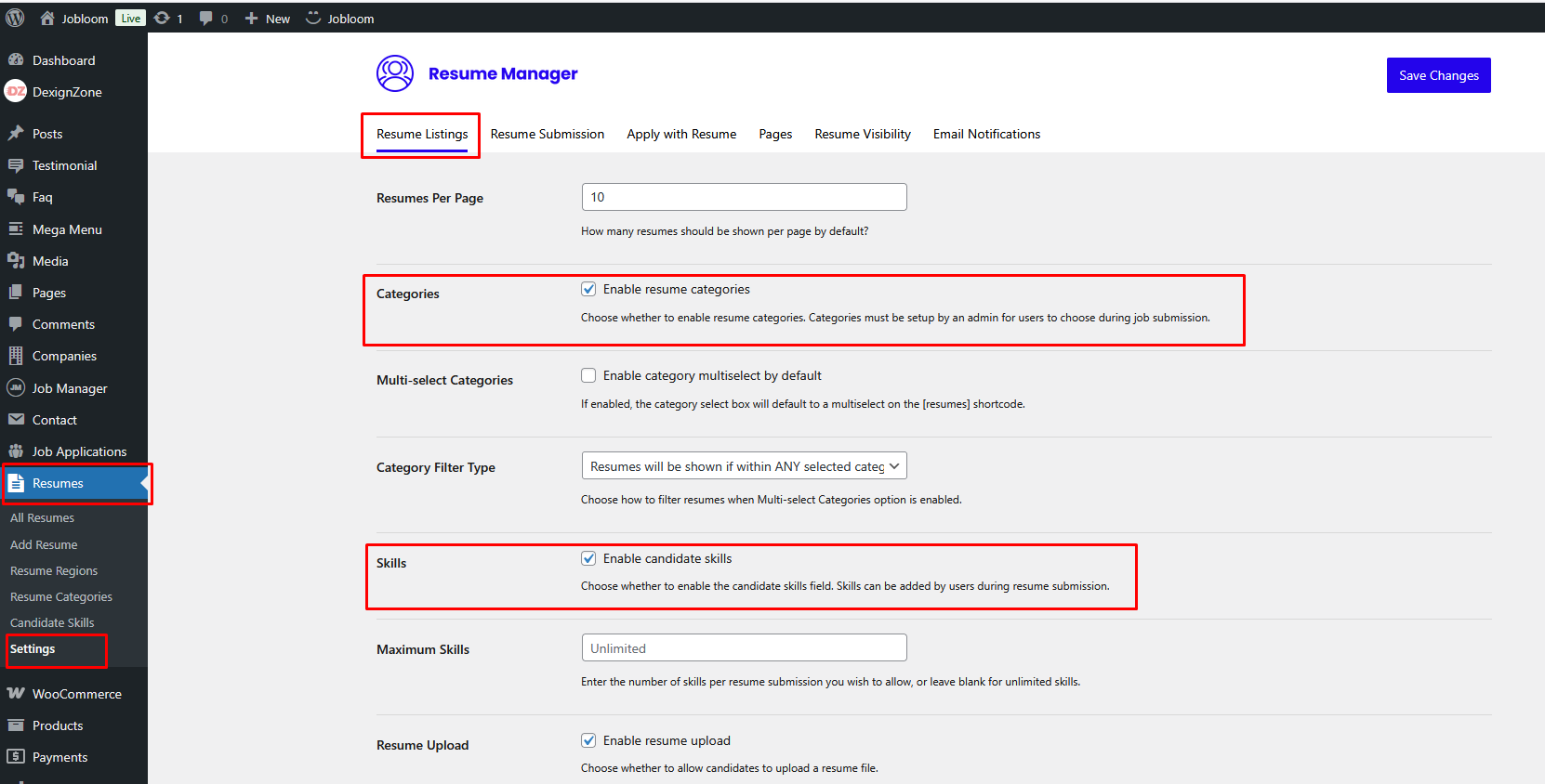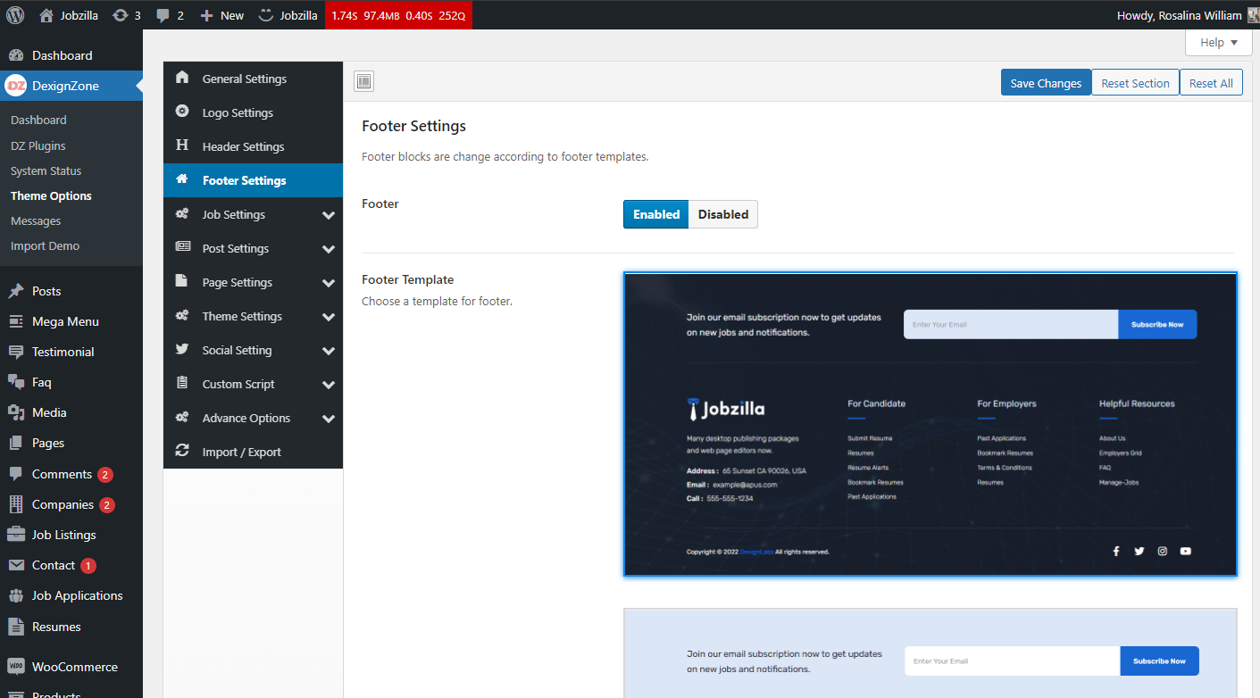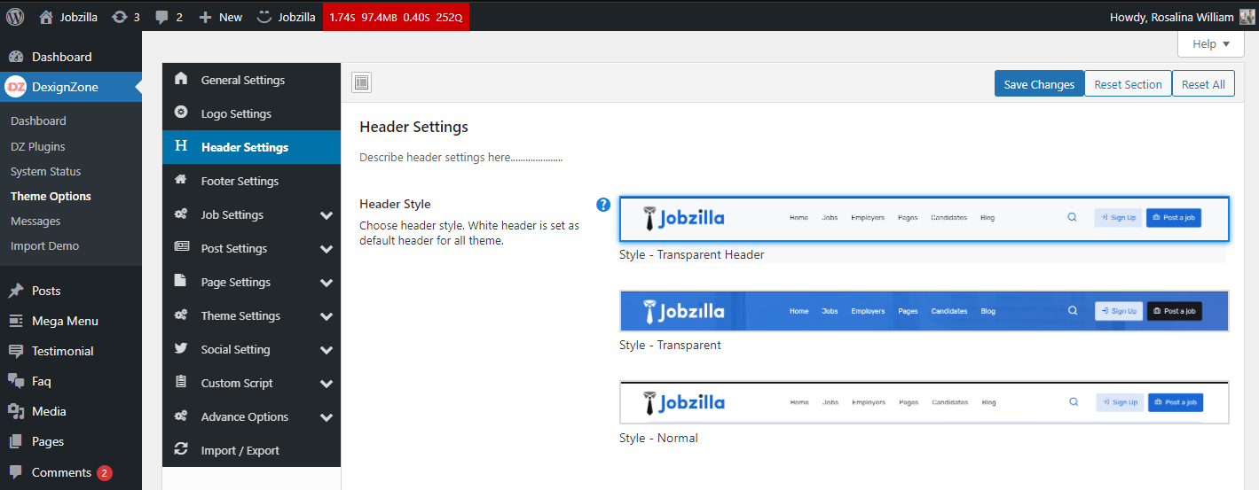 There are many other settings that are related to Jobloom theme, go to Theme Options, where you will find lots of theme related settings .