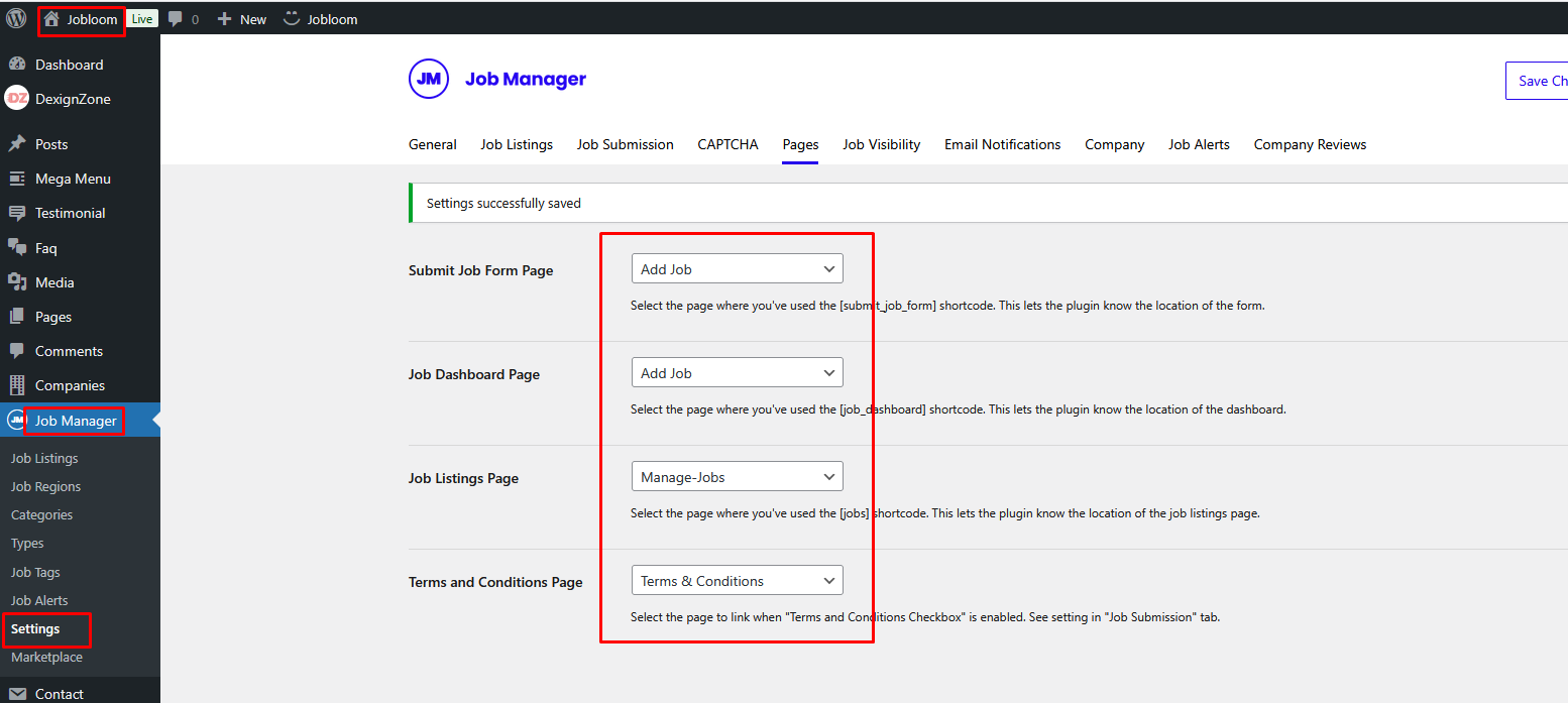 Follow Some Steps :- Job Listing -> Settings -> Pages