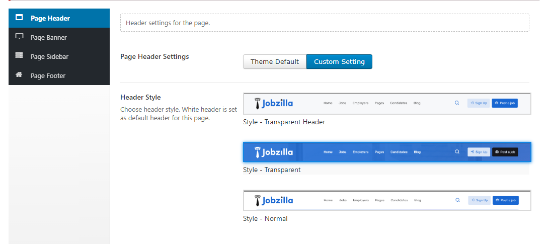 Page Header Setting.