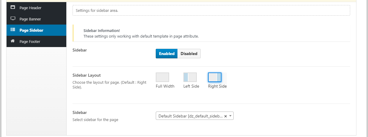 Page Sidebar Setting.