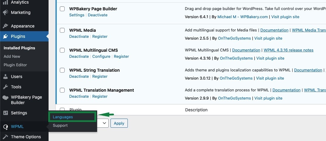 To manage languages, go to WPML > Languages.