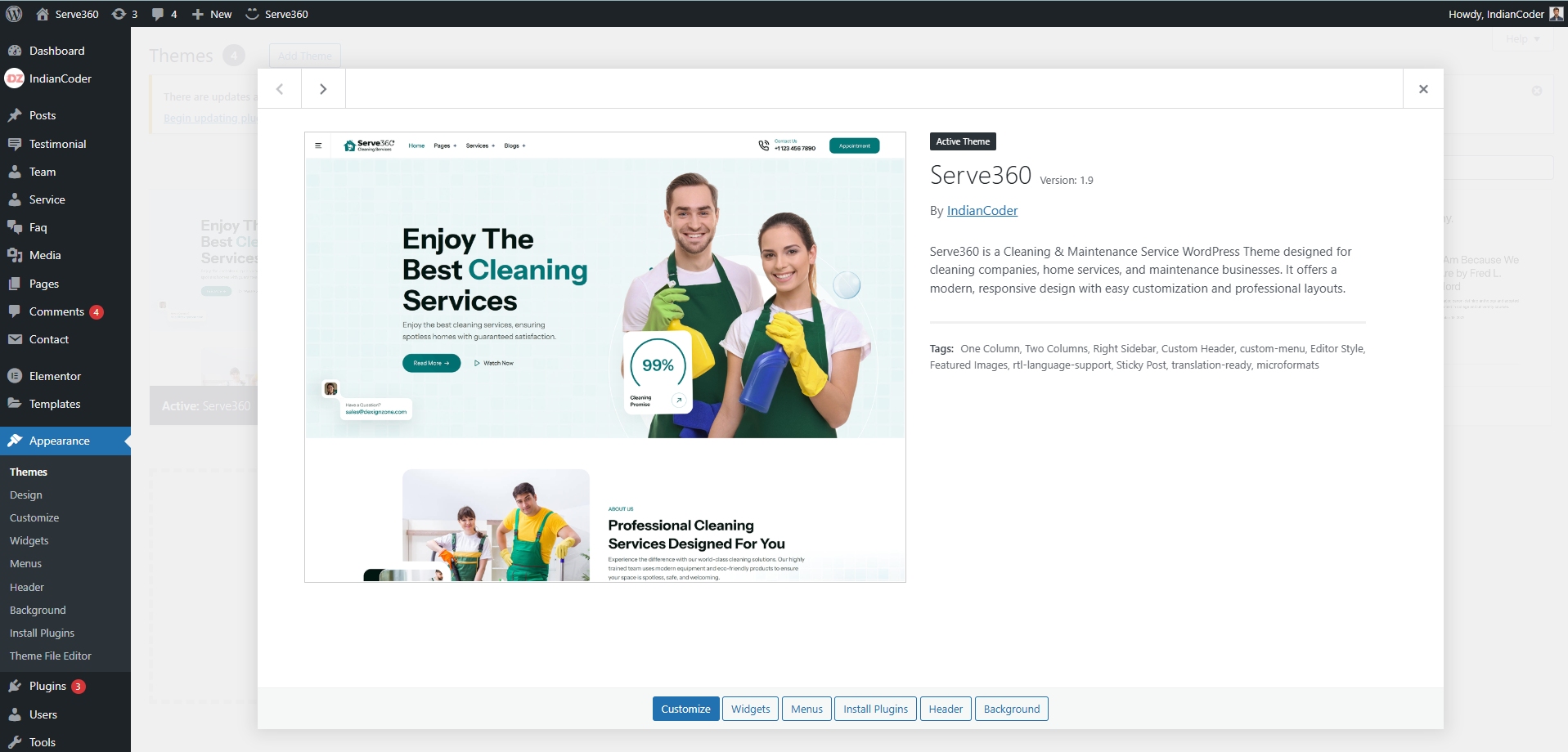 Serve360 is a WordPress theme to create a website for any type of Business specially for Consulting Services. Serve360 comes with powerful features. The Serve360 is built with Elementor and Contact From Seven the popular and flexible plugin in WordPress. Serve360 a clean responsive WordPress theme comes with two header layouts. The theme comes with the option of contact form to allow users to contact you.