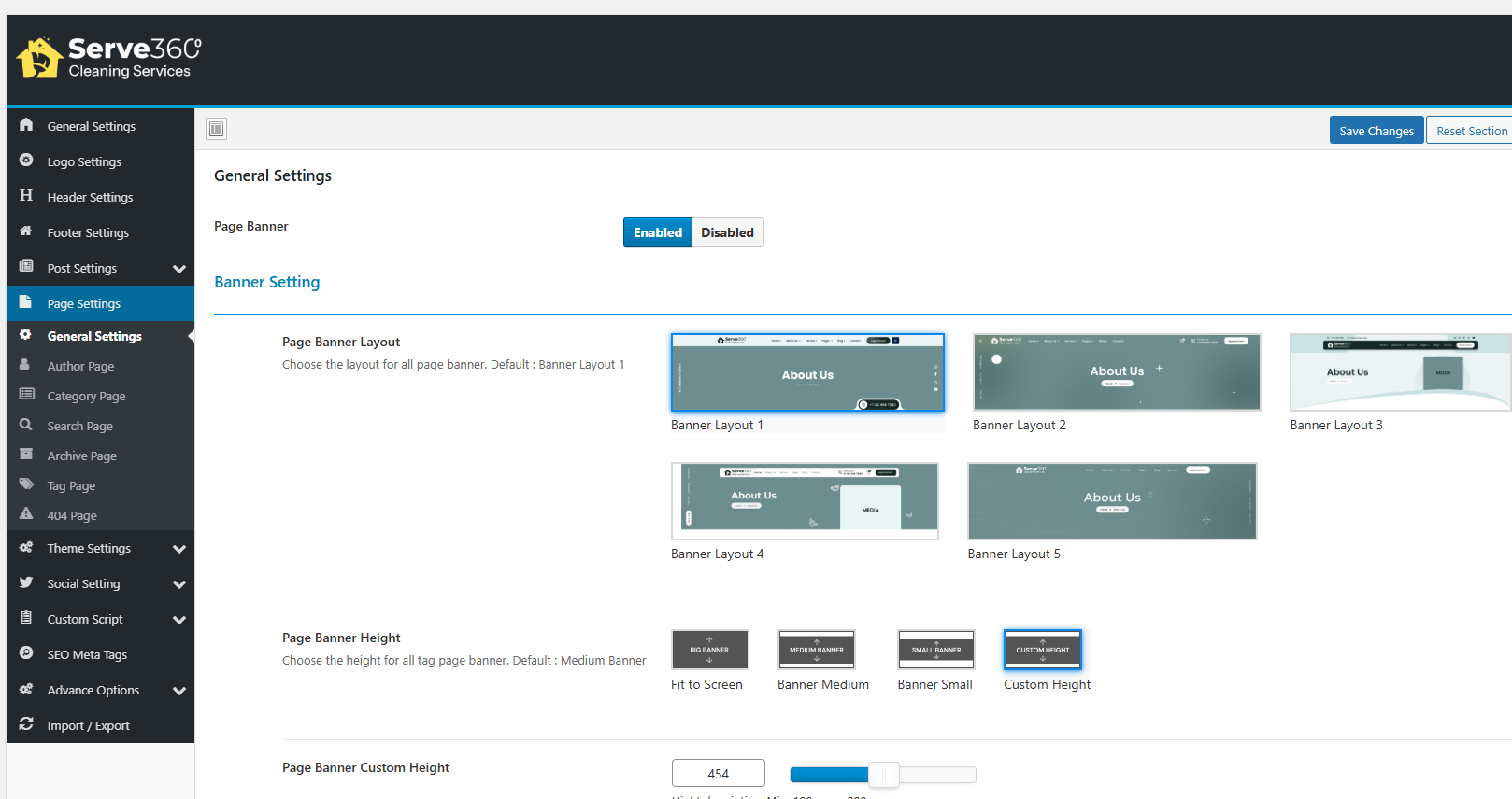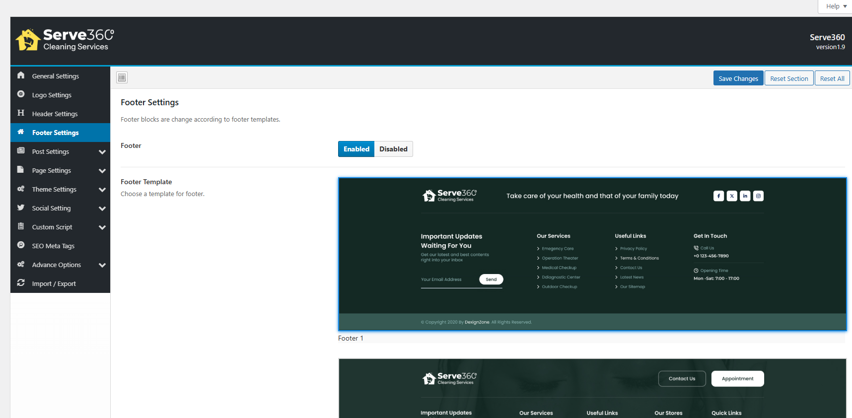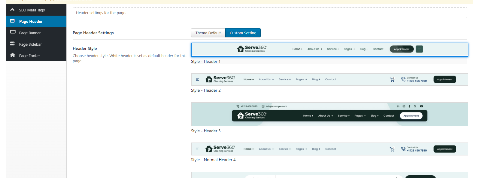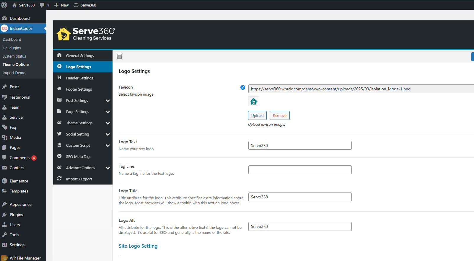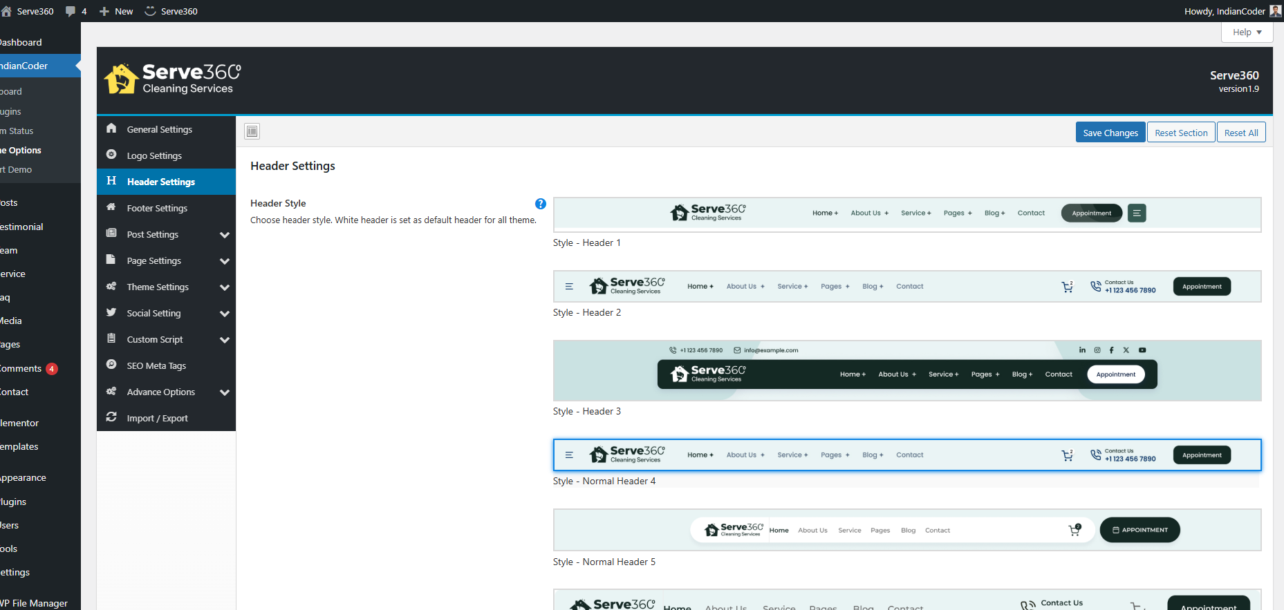 There are many other settings that are related to Serve360 theme, go to Theme Options, where you will find lots of theme related settings .