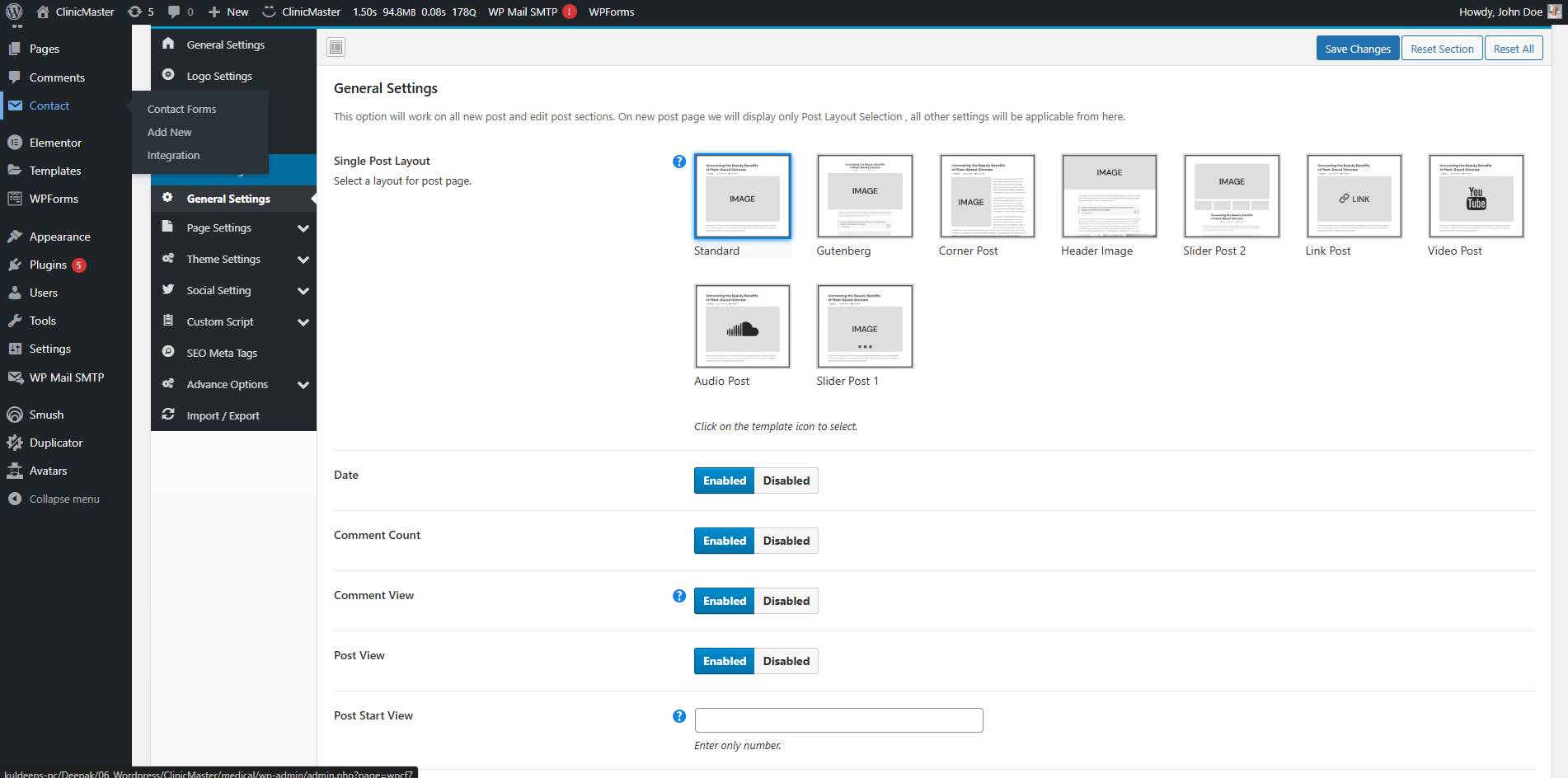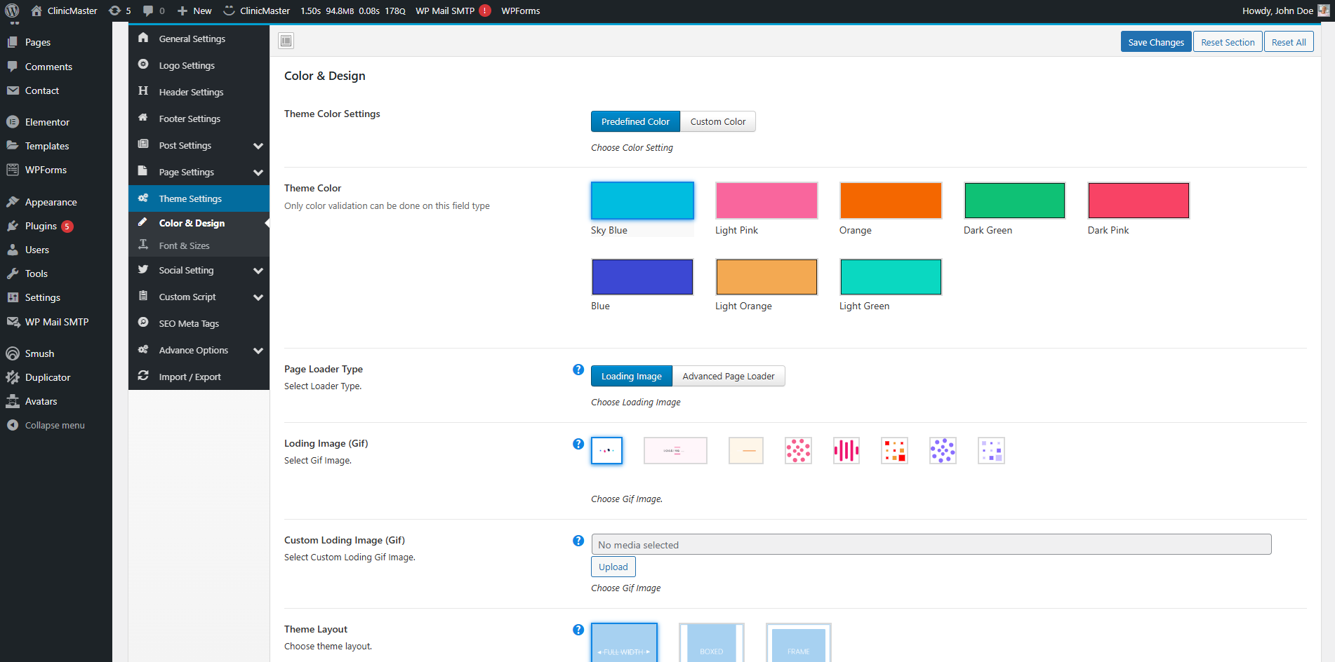 In THEME GENERAL SETTINGS; Enter Google Map Api Key, Choose Page Preloader option and date format for the theme. In LOGO SETTINGS; You can change logo and favicon icon In HEADER SETTINGS; Choose header styles according to the theme. In FOOTER SETTINGS; Choose footer settings for trending items, copyright. In POST SETTINGS; It has Single post page option In PAGE SETTINGS; Choose General(default settings when no other setting applied) and other common pages like (Tag, Category, Search, Archive, Author, 404) pages settings for banner title, banner height, banner image, sidebar, page layouts and pagination by ajax or not. In WOO COMMERCE SETTINGS; Required woo commerce settings available here. In THEME SETTINGS; You can choose skin color or page loader. In SOCIAL SETTINGS; Here social network links are added like facebook, google, linkdin, instagram, twitter, youtube, etc. In CUSTOM SCRIPT; You can add custom CSS, Javascript here. In ADVANCE OPTIONS; You can add dyanamic Sidebar here. In IMPORT/EXPORT; Easily Import the file and url as well as export also through copy the data.